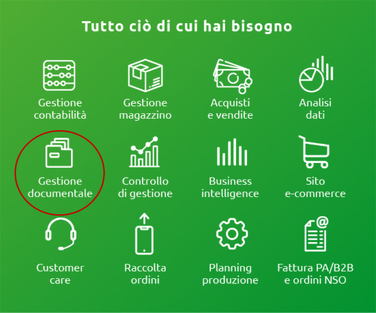 Gestionale, ERP, CRM, ecommerce, archiviazione documentale, gestione di processi e business intelligence.